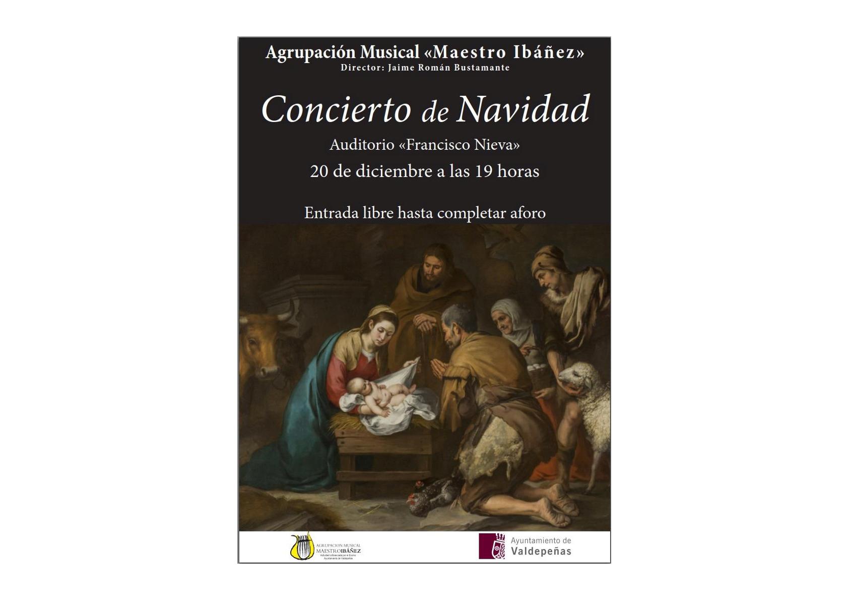 Concierto de Navidad a cargo de la Agrupación Musical “Maestro Ibáñez” Entrada libre hasta completar aforo + Añadir Google Calendar + exportación iCal / Outlook Tags:cultura, Cultura Valdepeñas, Programación cultural Organizador Concejalía de Cultura y Turismo En común Localización Teatro Auditorio "Francisco Nieva" Plaza San Nicasio, s/n Categoría Actividades culturales