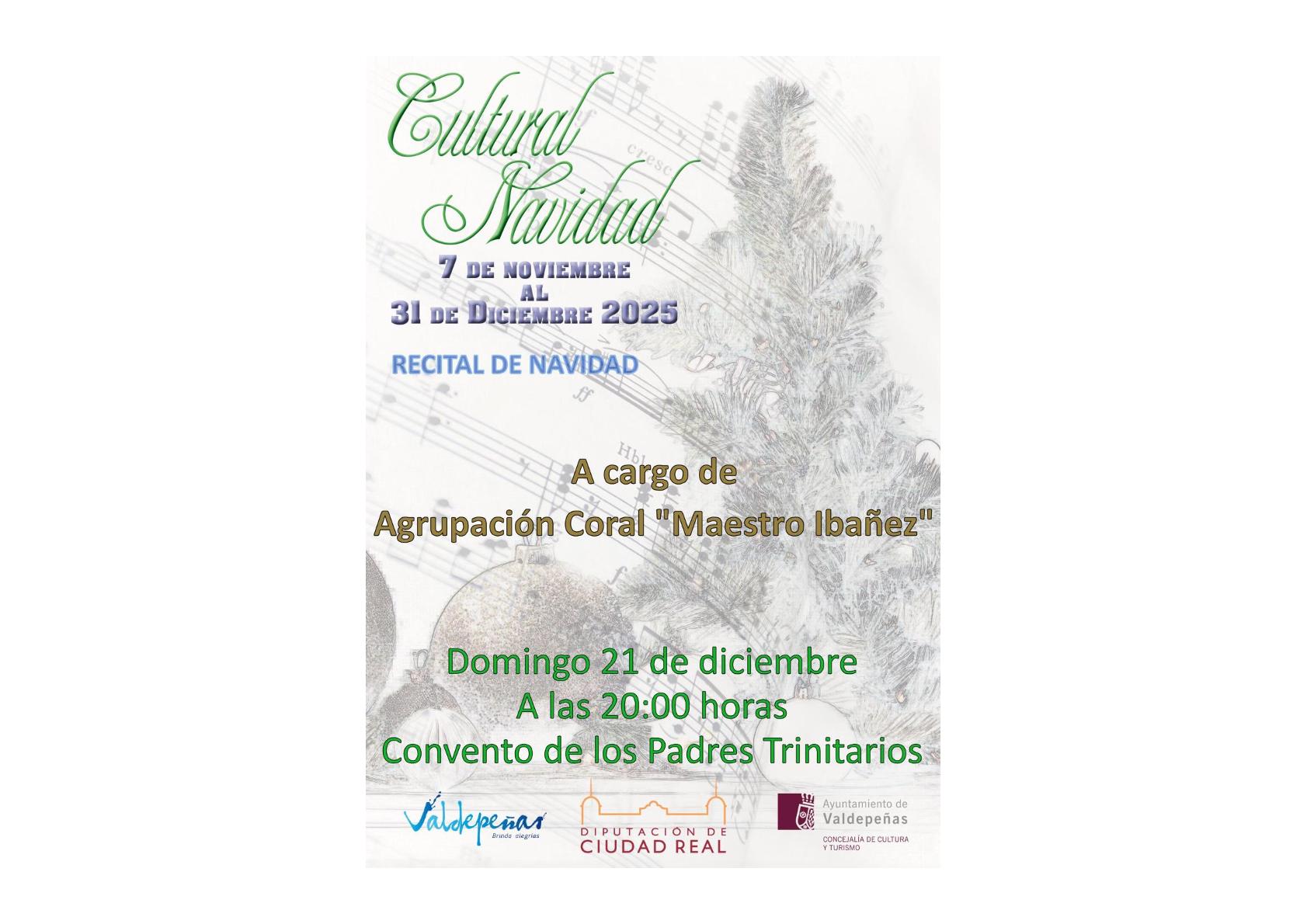 Recital de Navidad a cargo de la AGRUPACIÓN CORAL “MAESTRO IBÁÑEZ” + Añadir Google Calendar + exportación iCal / Outlook Organizador Diputación Provincial de Ciudad Real En común Localización Convento de los Padres Trinitarios Categoría Actividades culturales
