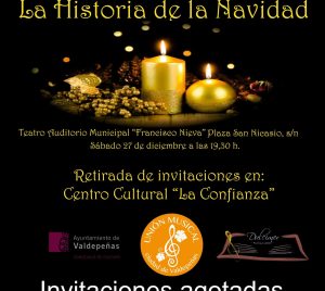 “La historia de la Navidad”. Concierto de Navidad a cargo de la Unión Musical “Ciudad de Valdepeñas” y Coro Dulcimer 27 Dic 19:30 Teatro Auditorio "Francisco Nieva"Plaza San Nicasio, s/n