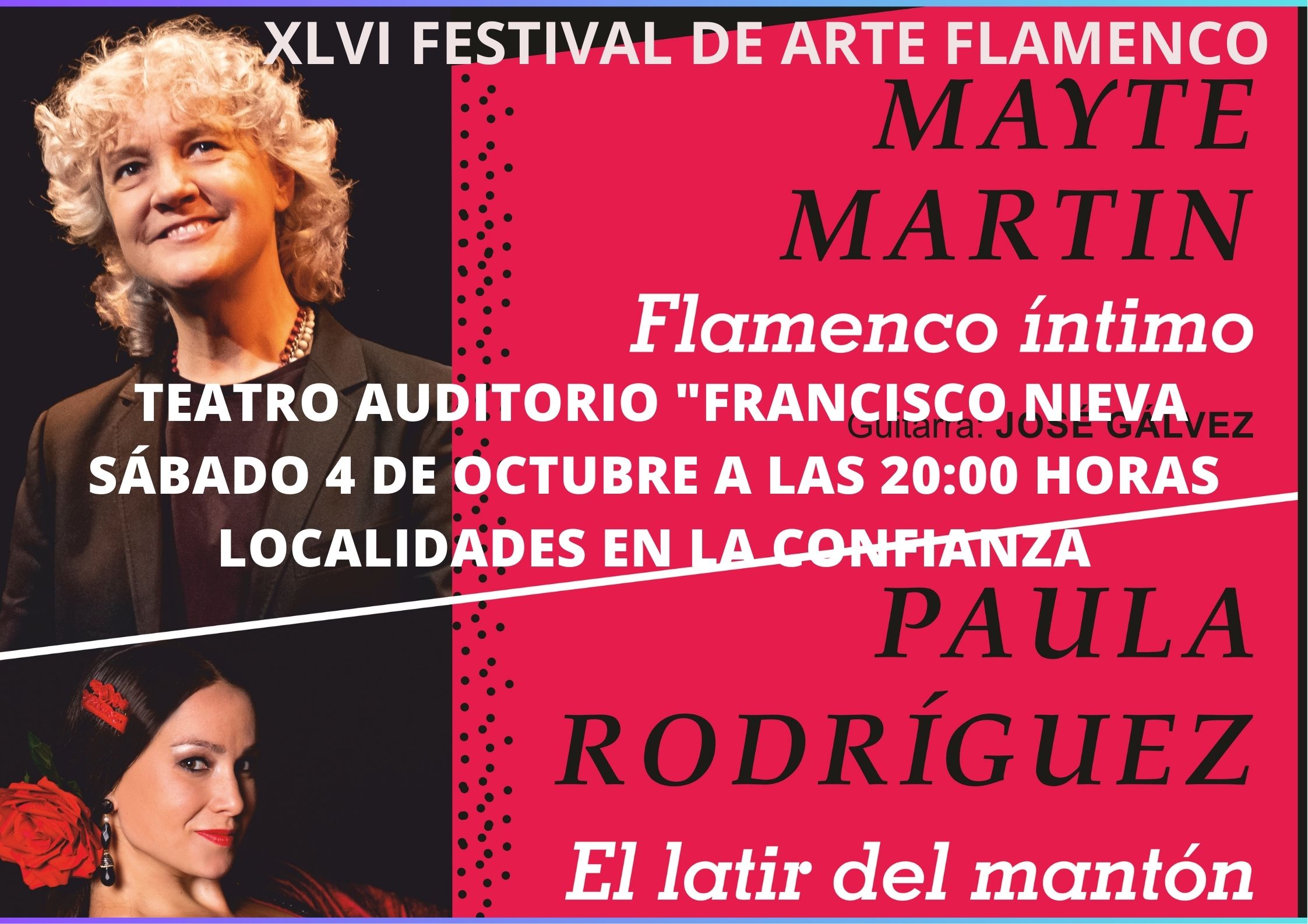 Mayte Martín presenta “Flamenco íntimo” con José Gálvez a la Guitarra. y Paula Rodríguez presenta “El latir del mantón”. Al cante: José de Calli, Antonia