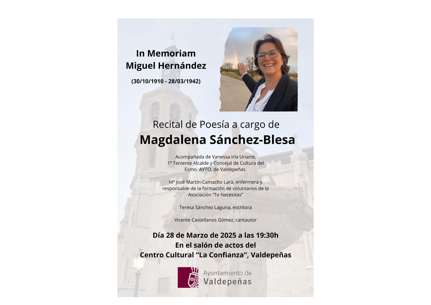 In Memoriam Miguel Hernández (30/10/1910-28/03/1942) Participan: Vanessa Irla Uriarte. Primera Teniente de Alcalde María José Martín Camacho Lara. Enfermera y responsable de la formación de