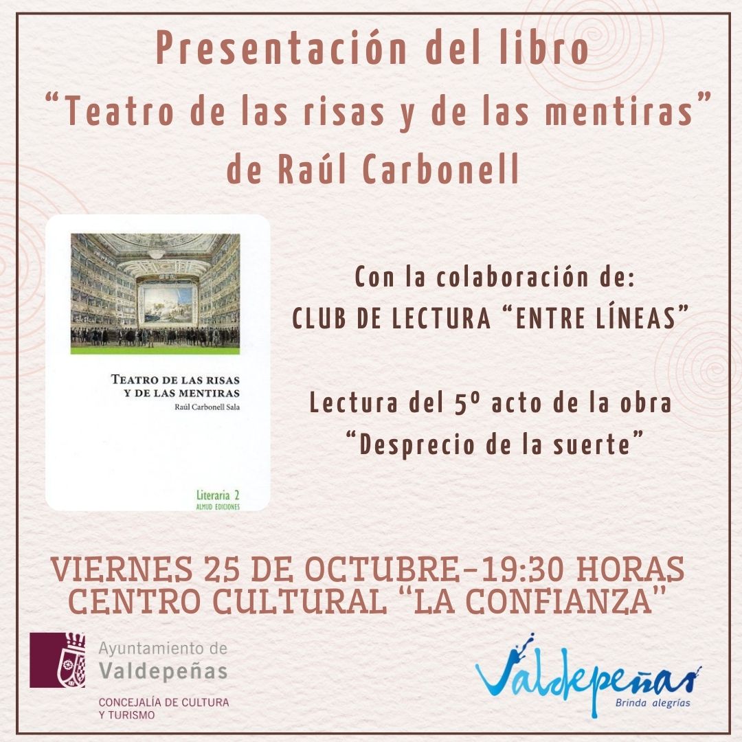 Presentación de la última publicación de Raúl Carbonell Sala, “Teatro de las risas y de las mentiras”. Colabora el Club de Lectura “Entre líneas” con